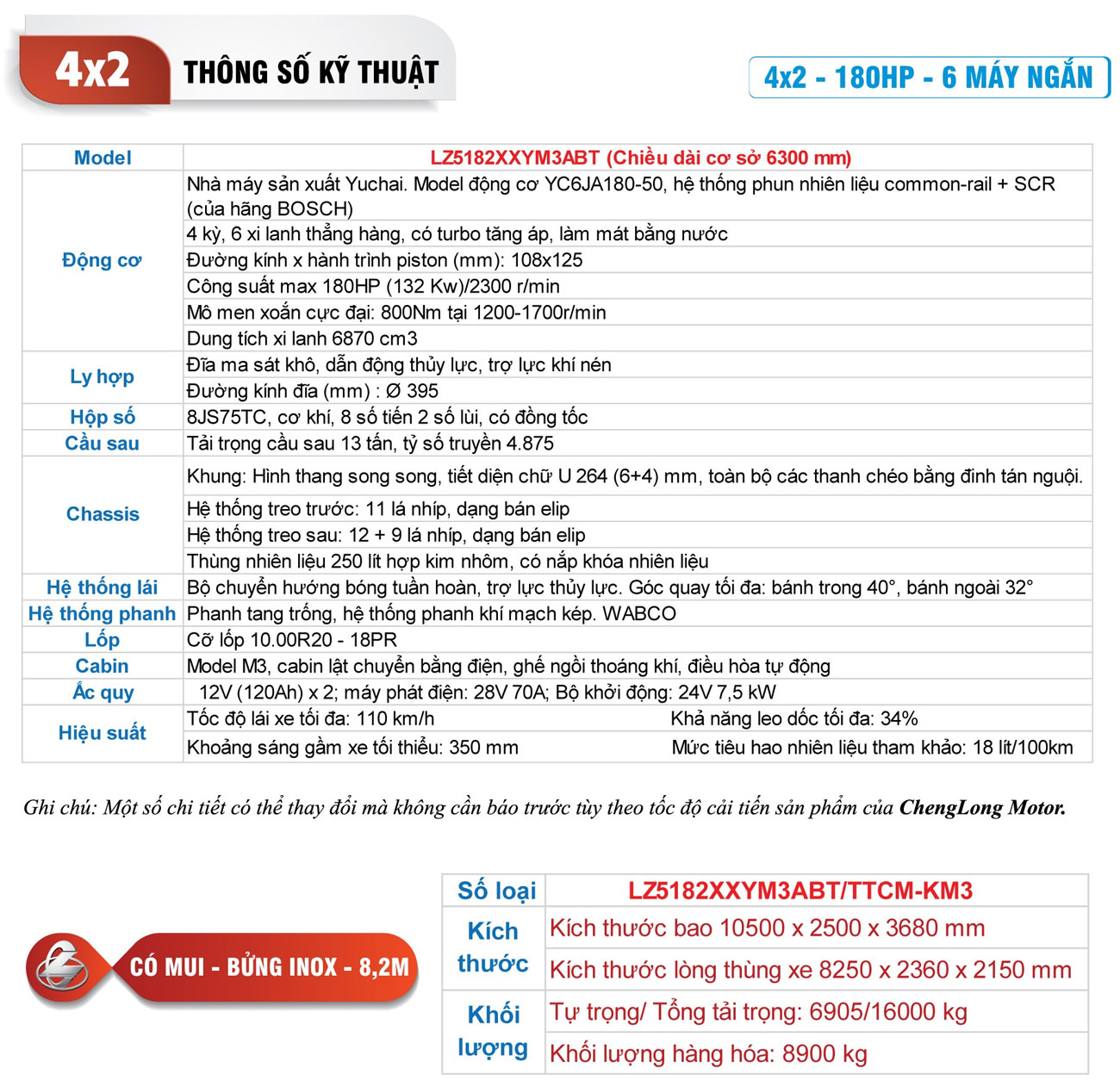 Chenglong M3 180HP – Thùng Ngắn